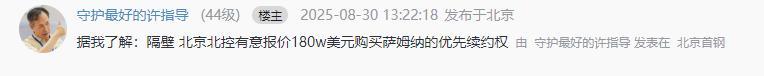 北控男篮这个休赛期并没有如愿以偿通过交易补强本土后卫线,王岚嵚、赵睿两名国字号后卫都没能签下。据最新消息显示,北控男篮有意报价180万美元购买萨姆纳的优先续约权。值得一提的是,北京首钢此前率先与四川男篮进行沟通,有意通过交易得到超级外援萨姆纳,北控男篮此番大手笔报价萨姆纳,就是希望与北京首钢进行抢人。对于张庆鹏指导而言,在没能补强本土后卫线的情况下,只能通过补强外援阵容来提升球队竞争力,萨姆纳作为上赛季CBA得分王,如果北控男篮能够抢人成功,有希望改变季后赛格局。